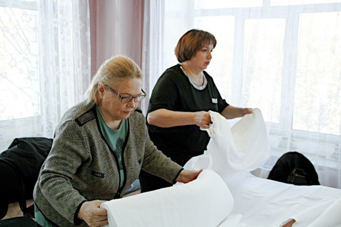 Неравнодушные жители города Тынды кроили и отшивали комплекты постельного белья для госпиталя — 38 ОМСБР медицинской группы. Ткань закупили с собранных денежных средств от участников группы «ZacVoих».